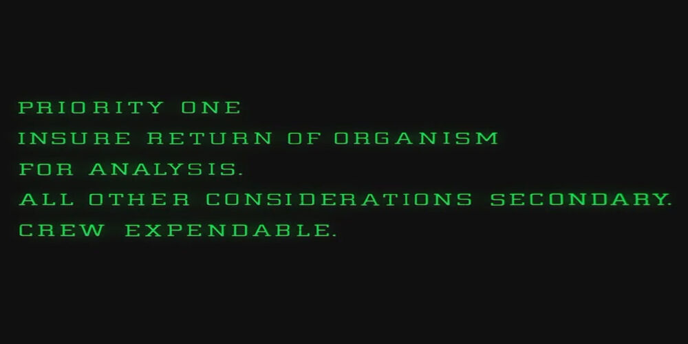 Special Order 937: "Priority one — insure return of organism for analysis. All other considerations secondary. Crew expendable."